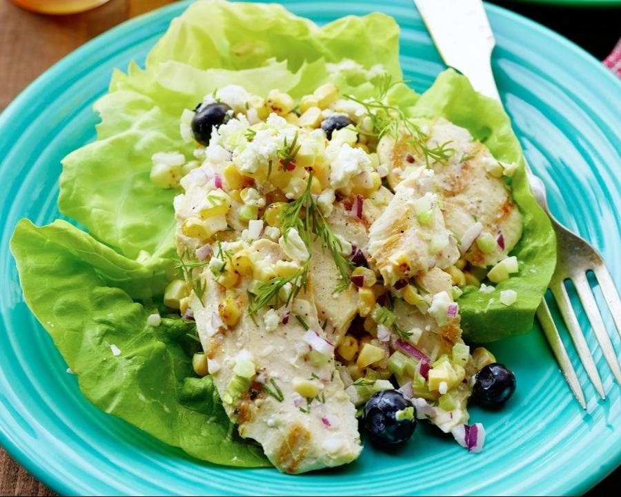 New twist on a favorite classic! This Chicken salad has feta and corn! Yum!