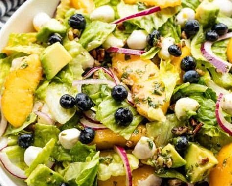 Summer peach salad is full of sweet flavors from peach, blueberry, avocado and more!